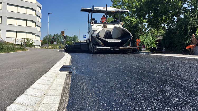 Sahli hat auf seinem Foto die ersten Meter Präzisionsarbeit des Implenia-Asphaltfertigers festgehalten: