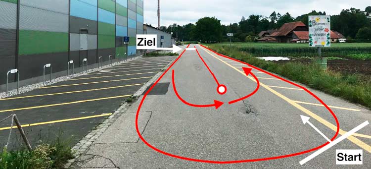 Als Zuschauer gibts an einer flachen geraden Strecke nicht viel zu sehen, Rennfahrer düsen mit 40–60 km/h vorbei… In den Kurven lässt sich schon eher die unterschiedliche Technik beobachen. Die höchste Herausforderung ist die Spitzkehre bei Blumen-Maurer in Kehrsatz: Nicht zu früh bremsen, Reifengrip optimal nutzen, dabei möglichst viel Schwung in die Abfahrt mitnehmen. Vorher, die Selhofen-Rampe hoch, werden jedenfalls die Top-Athleten nur wenig langsamer, dieses Hängli wird in wenigen Sekunden «hochgedrückt» werden.