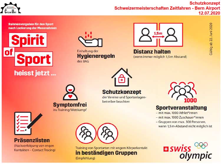 - Entlang der Strecke werden keine speziellen Zuschauerzonen ausgeschieden, es gelten die generellen (Abstands-)Regeln, das Tragen einer Maske wird empfohlen, den Anweisungen des Kontrollpersonals ist Folge zu leisten