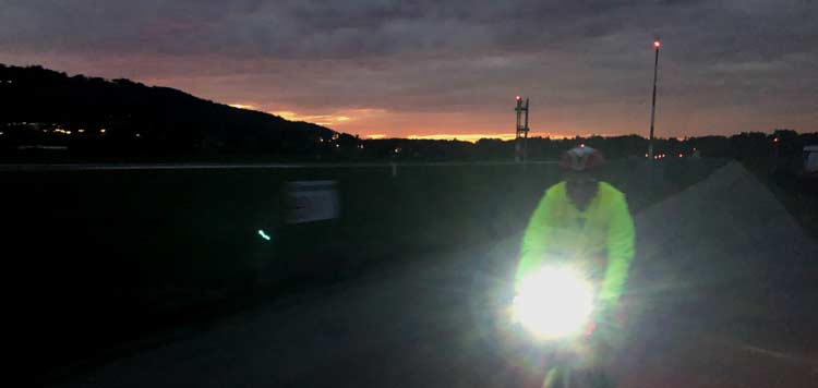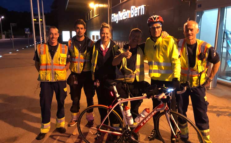 Wenn Sie also bis nächsten Mittwoch irgendwann, auch mitten in der Nacht, einen Rennvelofahrer im Dorf und um den Flughafen sehen (neongelbe Weste, rotes Rennvelo, total 14 Mal wird er vorbeikommen): Anfeuern!