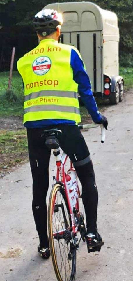Wenn Klaus Pfister nicht gerade am Flughafen arbeitet, fährt er viel Rennvelo. Und heckt Ideen aus. Seit Samstagmorgen bis am Mittwoch sitzt er auf einer seiner Ideen. Sie ist 1400 Km lang. Auf dem Velo. «Nonstop».