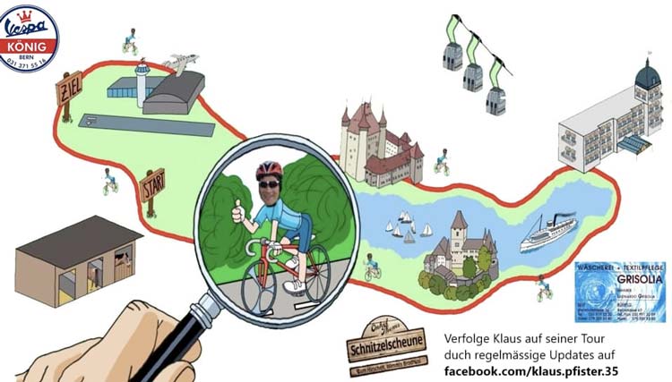 Seine Runden durchs Aare-/Gürbetal und um den Thunersee stellt er unters gleiche Thema wie das Race for Life: «Power gegen Krebs». Wer den Zweck seiner Rekordfahrt unterstützen will, kann dies hier tun: