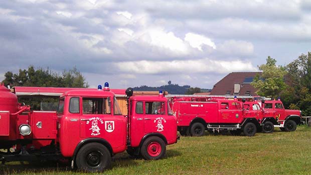 Alte, aber blitzblank gepflegte Saurer, Bernas, Magirus’, Dodges – wer pure, unmittelbare Technik mag, Fahrzeuge ohne digitalen Klimbim (und ohne E-Motoren :-), der ist am Samstag beim Dorfschulhaus am richtigen Ort.