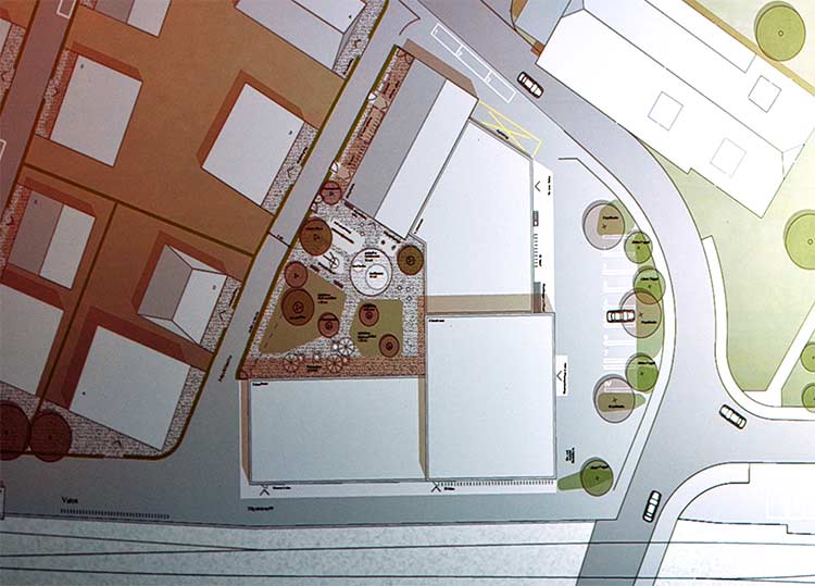 Der VOLG-Laden wird während der Bauzeit, voraussichtlich bis Sommer 2022, in einem Provisorium auf der Wiese neben dem Wyhus zu stehen kommen. Die Baupblikation dazu ist schon publiziert. Die Publikation für den Bauhaus-VOLG-Komplex werde demnächst publiziert werden.