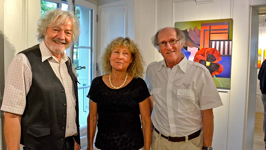 Die Kultur-, Freizeit- und Sportkommission der Gemeinde hat für die Schlossgalerie einen Ausschuss gebildet, der für das Programm verantwortlich ist. Leiter ist Samuel Heger, der sich für die erste Ausstellung mit Vreni Künzler und Peter Sennhauser (siehe Bild) und weiteren Helfern mit sehr viel Engagement ins Zeug gelegt hat, damit alle Bilder sicher und gerade hängen («für jedes Bild zwei Fäden») und alle 50 Lampen richtig zielen («auch der Blumenstrauss erhielt am Schluss eine»).