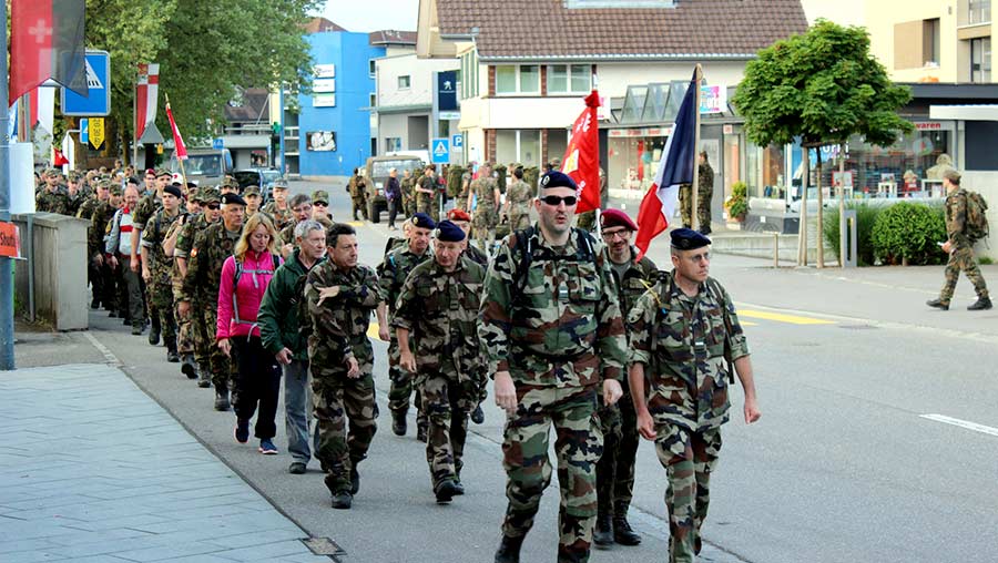 Für die Besucher bietet unsere Region viel fürs Auge und für ds Gmüet. Und für Belper, die vielleicht nicht mitwandern, aber die Fest-Atmosphäre auf dem Dorfschulhausplatz geniessen wollen, gibts bunte Internationalität. Armee-Gruppen aus Deutschland, Frankreich, US-Gruppen der Nato, Gruppen aus Holland, Belgien usw. bieten eine interessante Mischung aus verschiedenen Camouflage-Mustern, Sprachen und Marschgesängen. So kann man den Zweitägeler auch als Friedensmarsch sehen.